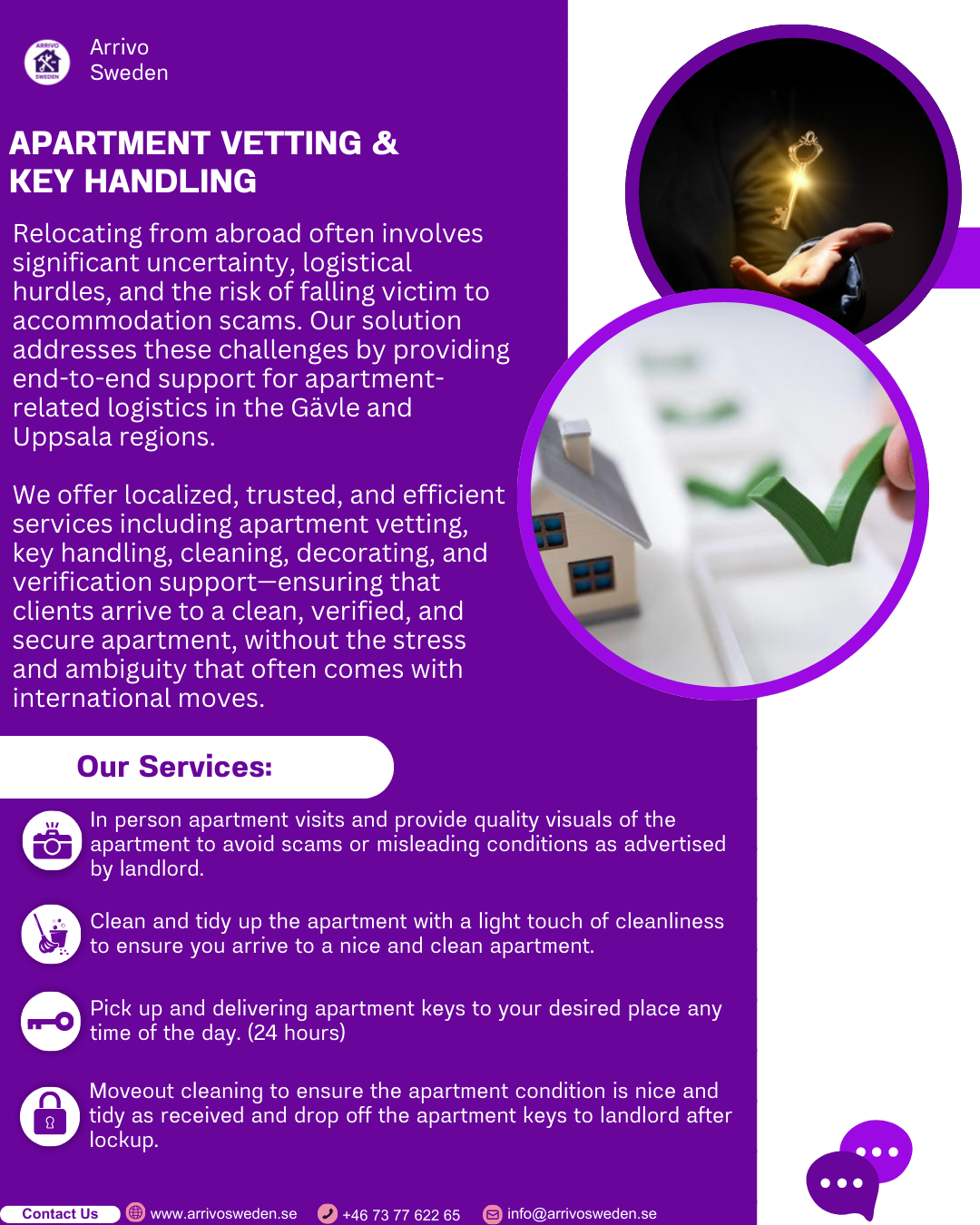 Your Local Partner for Stress-Free Apartment Logistics in Sweden. Arrive to a Clean, Verified, and Secure Apartment, Guaranteed