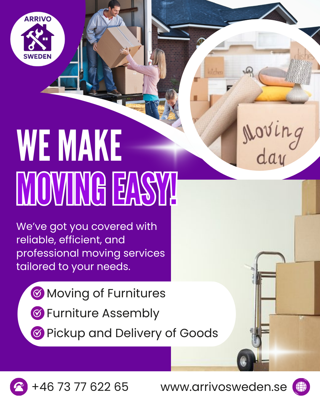 Are you moving to new place of need to pickup some goods or furniture's from the store. Let Arrivo Sweden handle the moving, pickup and delivery for you.